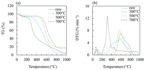 Steiner [57] points out that temperature plays a central role in the final characteristics of biochar. While residence time and heating rate are important complementary factors in the process, numerous studies in the literature evaluate biochar’s stability and physicochemical properties under varying temperatures, often standardizing other variables to maintain consistent conditions [58,59]. Keiluweit et al. [51] proposed a diagram illustrating the transformation of biomass and its components into four types of char as temperature increases, as shown in Figure 4. Additionally, a gravimetric analysis categorizes the char fractions into five distinct regions, each representing unique characterization properties and potential applications.