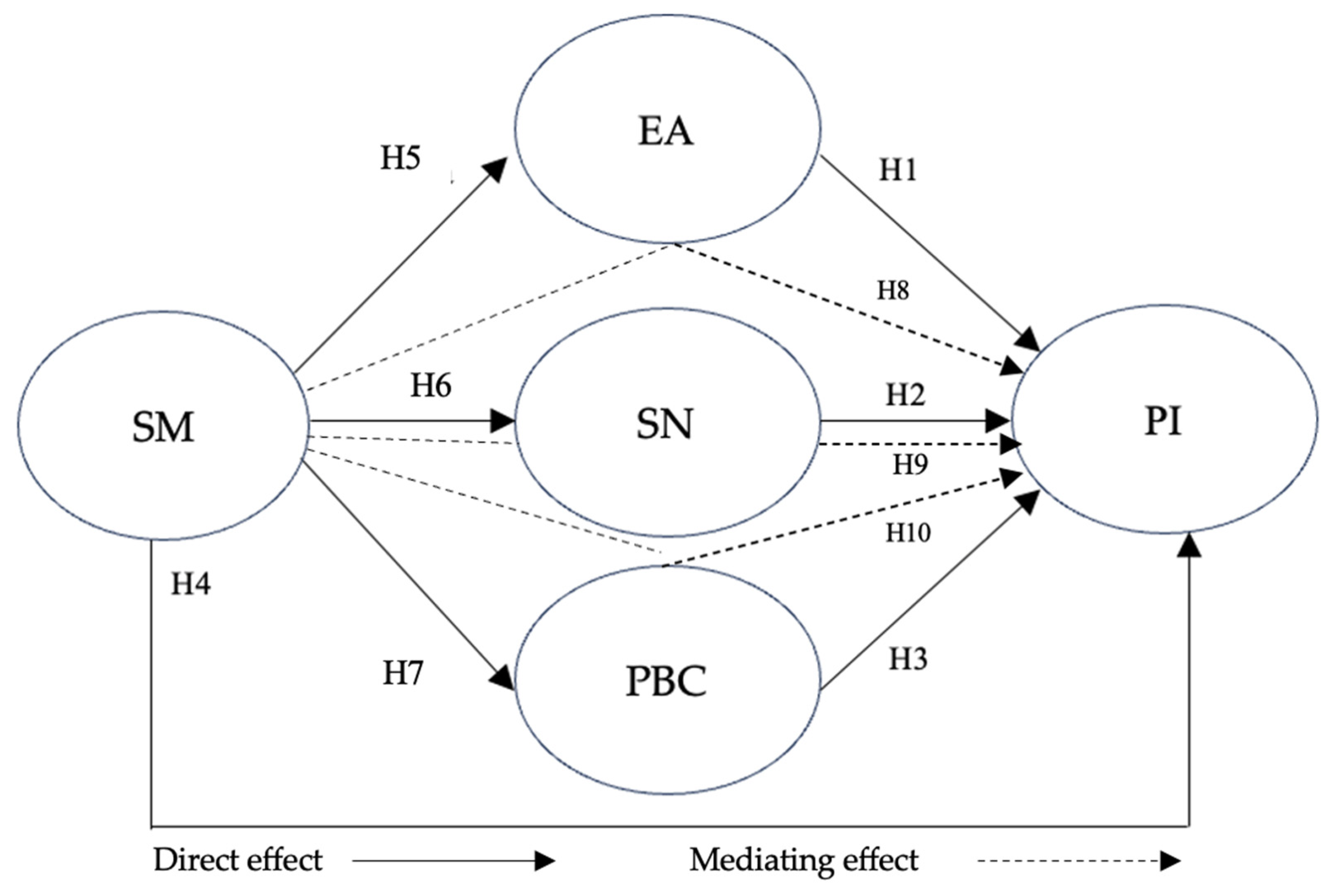 2.5. Social Media and Its Influence on Purchase Intention, Environmental Attitude, Subjective Norms, and Perceived Behavioral Control