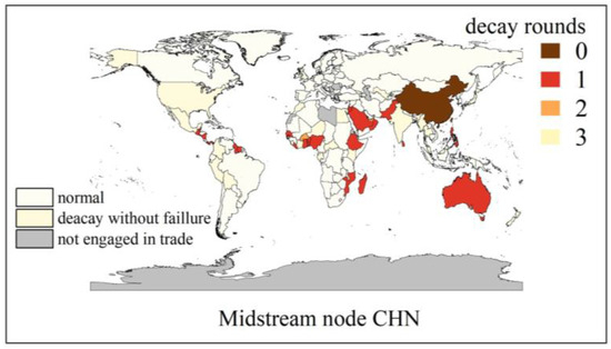 Existing studies demonstrate that overload cascading failure models are widely applied, yet their theoretical frameworks prove inadequate for underload cascading failure scenarios. The fundamental distinction lies in failure triggers: overload failures occur when the node load exceeds maximum capacity, whereas underload cascading failures arise from loads dropping below the minimum operational thresholds, leading to performance degradation or functional loss [60]. These differences manifest not only in failure initiation conditions but also in the dynamic characteristics of load redistribution mechanisms. Although overload failure research is relatively mature, studies on underload cascading failures in resource trade networks remain nascent. Critical aspects including modeling approaches, propagation mechanisms, and systemic impacts on global trade networks require further exploration. Particularly in global resource trade networks, underload failures may induce unique cascading effects and network reconfiguration patterns that remain uncharacterized. This research gap underscores the urgent need for theoretical and empirical investigations to advance disruption resilience studies in global resource trade networks.