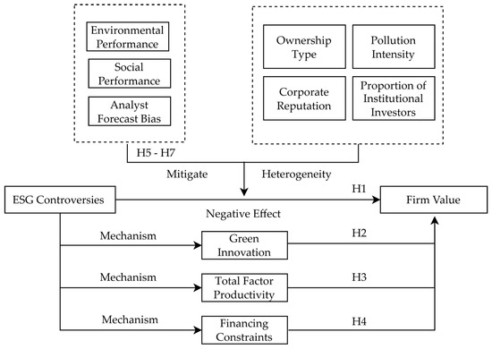 12], neglecting factors such as pollution levels and investor ownership. Against this backdrop, this study addresses the following questions: Do ESG controversies affect firm value? What mechanisms underlie this relationship? What factors may mitigate this effect? Does the impact vary across firms with different characteristics?