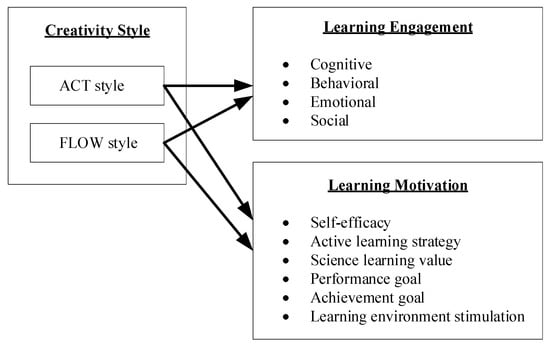 Research Model of Creativity Style, Learning Engagement, and Learning Motivation.