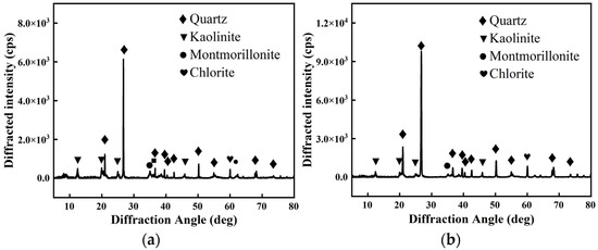 XRD test results of weakly cemented mudstone. (a) Dry mudstone; (b) saturated mudstone.