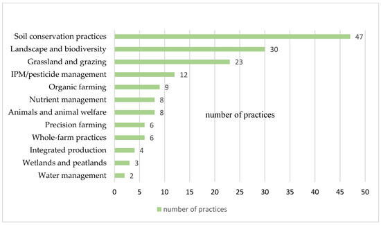 Number of practices under the eco-schemes dedicated to specific areas related to environmental protection and animal welfare in the EU Member States under the CAP 2023–2027. Source: [18].