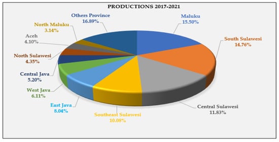 Indonesian clove production centers in 2017–2021 (10 highest provinces).