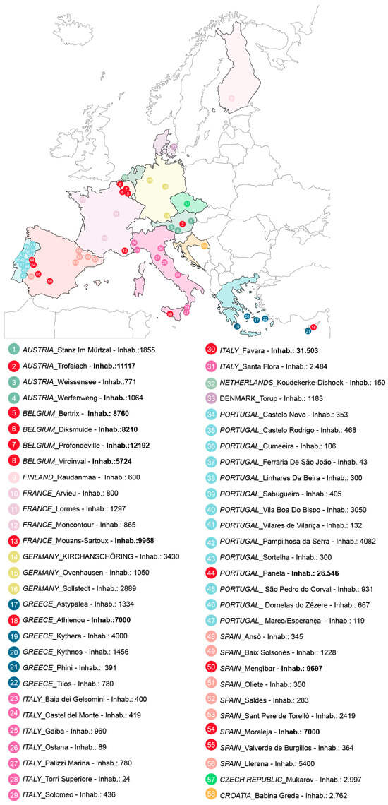 Compliance with the criteria as selection requirements allows us to identify an observatory of virtuous practices to develop a European regenerated rural villages atlas (Figure 2).