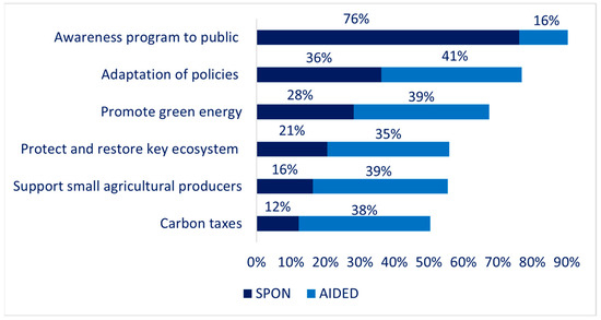| Government action [63,65,66] | Awareness program, adaptation policies, protect key ecosystems, support small agricultural producers, promote green energy, carbon taxes |