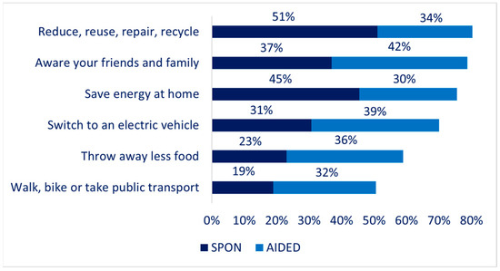 | Individual action [19,61,63,71] | Save energy at home, walk, bike, or take public transport, throw away less food, reduce, reuse, repair, recycle, switch to an electric vehicle, and awareness among friends and family |