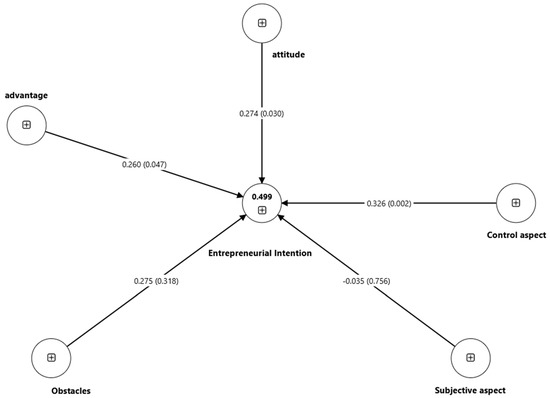 | Subjective aspect -> Entrepreneurial intention | −0.035 | −0.011 | 0.114 | 0.311 | 0.756 |