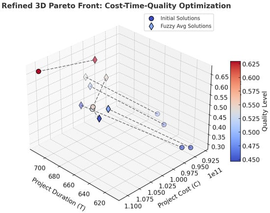 This study aims to optimize the trade-off between time, cost, and quality in project implementation within modern agriculture by integrating fuzzy logic and genetic algorithms. The objective is to identify the most effective methods for carrying out project activities, considering their time, cost, and quality, and to determine Pareto optimal solutions [129]. Each activity involves various implementation methods, each with distinct time, cost, and quality attributes. To address uncertainty, input data—such as time, cost, and quality—are represented as triangular fuzzy numbers. Additionally, the relative importance of each factor and activity is weighted to support decision making. This approach takes into account the interdependencies between activities and the risks associated with estimating these parameters [130].