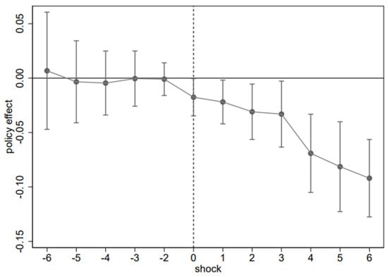 The key premise of applying the multi-period DID model for policy assessment is the parallel-trend assumption; i.e., the trends in air quality effects in pilot and non-pilot cities should be parallel without a significant difference before the implementation of the CBEC-PZ policy while showing a significant downward trend after its implementation. In this paper, the year before the implementation of the policy is used as the base period to re-estimate the policy effect, and the model is set as follows: