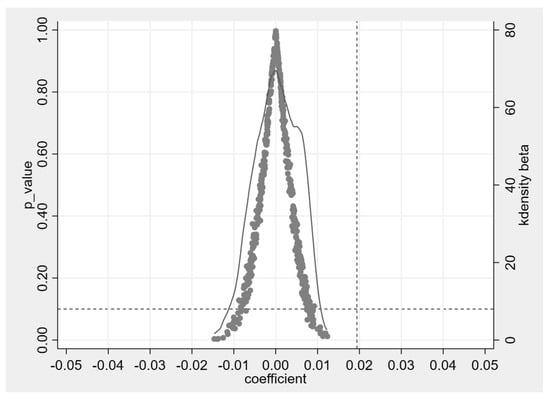 In the baseline regression part, this paper introduces city and time fixed effects to eliminate the endogeneity problem caused by differences in characteristics between cities, as well as time-dependent common shocks, in addition to the inclusion of numerous city-level control variables to exclude their effects on air quality. However, to further avoid the effects of other unobservable factors, this paper used a placebo test for further validation. Specifically, this paper randomly generated the experimental group and conducted 500 repetitions of Bootstrap sampling, and the results are shown in Figure 2. The estimated coefficients of the placebo test obey the normal distribution at x = 0, while the estimated coefficients of the actual treatment group are significantly different from those of the randomized treatment group, and the placebo test is passed.