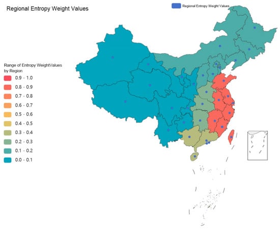 where is the price indicator for indicator in city , is the regional production capacity, is the transport coefficient, and is the road density of city. Then, the entropy weights of each parameter are calculated according to the equation below: