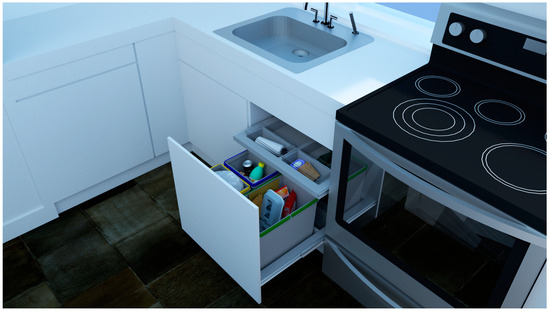 Additionally, the kitchen is equipped with a removable storage unit with separate bins to facilitate garbage sorting and recycling. Garbage sorting entails examining the entirety of the garbage and extracting recyclable materials for proper disposal. The storage facility also encourages the practice of household recycling by easing the sorting of garbage (Figure 9).