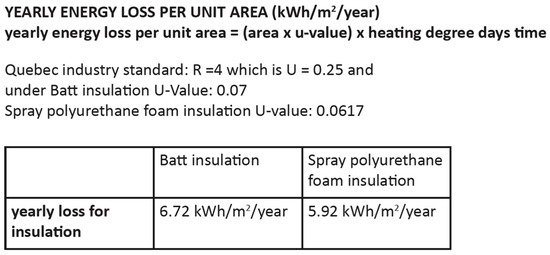 yearly energy loss per unit area = (area × u-value) × heating degree daytime; for Domus Ex Machina, this calculation yields an energy loss ranging from 5.92 kWh/m2/year to 6.72 kWh/m2/year.