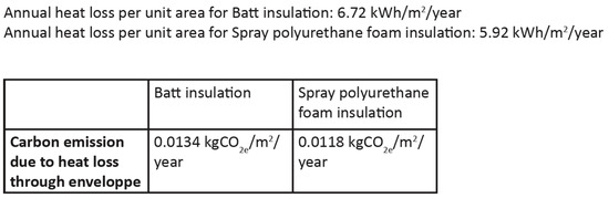 Carbon emission due to heat loss through envelope = annual heat loss per unit area × emissions factor.