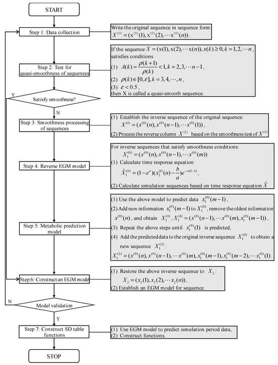 (3) For the inverse sequence X(1), if there is with continuous n ≥ 2 that does not meet the quasi-smooth sequence condition, then the MT-EGM model is established for the first n – m + 1 data that meet the smooth sequence condition to predict the data in the next few periods.
