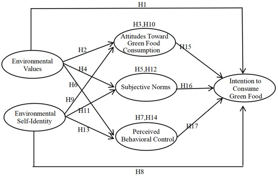 According to the TPB theoretical framework, which works as an explanation tool for multiple behavioral choices, the main elements that determine behavioral intentions are attitudes along with subjective norms and perceived behavioral control [29]. TPB has evolved through substantial improvements during years of research efforts which aimed to transform its basic framework when analyzing sustainable consumption. Research and research demonstrate that TPB works better when expanded with personal norms along with biosphere values and environmental self-identity components because these constructs capture multiple dimensions of pro-environmental habits [30,31]. Theoretical improvements enable extended use of the model because it expands its boundary to research green food behaviors across various cultural settings and demographic groups including emerging market consumers and different age segments.