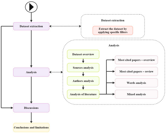 In order to perform a bibliometric analysis, according to the literature [59,60], it is necessary to divide the analysis into four parts, which can be seen in Figure 1: