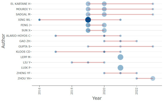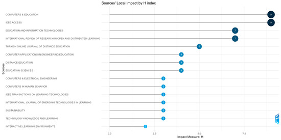 So far, we have discussed the authors, but it is also crucial to note their publication preferences. Figure 4 displays the top 15 preferred journals for publishing research. Leading the list is the journal “IEEE Access”, where 14 papers on MOOC abandonment were published. This journal is interdisciplinary and application-oriented, operating exclusively online, which aligns with the high volume of papers published in this field.