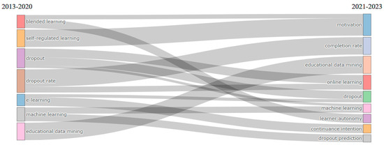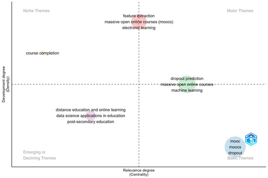 Considering the papers listed in Table 1, it should be stated that the present paper distinguish which of the studies from the previous researchers mainly focus on education research in general, which focus on higher education in particular, and which focus on various issues related to education such as the evolution of education in a particular area, assessment practices, dropout prediction methods, learners’ confusion, the involvement of academic and emotional support, etc., by conducting a quantitative analysis of MOOC dropout research based on an overview of the publications, citations, authors, and institutions. Furthermore, this paper explores how research themes in the area of MOOC dropout have evolved and which are the themes that have attracted the interest of the research from the field by taking into account the most cited papers.