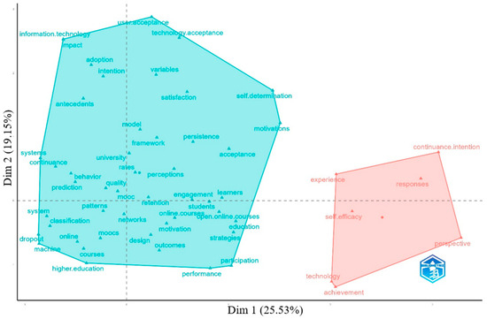 The fourth section, titled “Analysis of Literature”, is subdivided into four subcategories: the first two subcategories (“Most cited papers—overview” and “Most cited papers—review”) focus on the most cited works, providing readers with insights into the research approaches and objectives of authors who have studied MOOC dropout. Each paper is accompanied by a comprehensive summary, including details such as the number of authors, the journal in which studies were published, the total number of citations, the total number of citations per year, and the normalized citation counts. The third subcategory, “Word Analysis”, concentrates on identifying the most frequently used keywords, including author keywords, “keywords plus”, and common word groups (n-grams) found in the abstracts and titles of the selected papers. The final subcategory features two three-field plots, which illustrate the connections between countries, authors, and journals, as well as between affiliations, authors, and keywords. The N-grams are actually the bigrams and trigrams found, which represent groups of words (two or three words as the case may be) that had a significant number of occurrences in the identified works. In addition, the last sub-category includes a thematic map of the authors’ keywords, used to describe the current state of the research field and to highlight possible future research directions. A thematic evolution map is provided to show how research techniques have evolved up to 2020 and beyond. Finally, a factorial analysis is conducted to explore and understand the structure of relationships between the variables in the dataset.