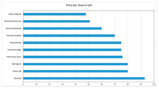 There is a significant variation in the pricing of weekly deliveries in Polish CSA groups. The most economically favourable option is offered by CSA Skosztuj To!, operated by the Wrocław University of Environmental and Life Sciences (Figure 4). The 32-week season costs PLN 1120, resulting in a per-delivery price of approximately PLN 35.