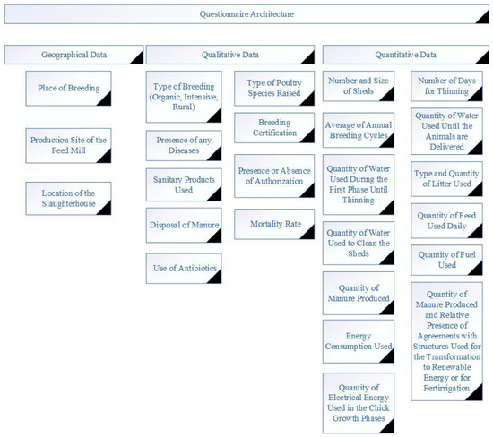 It is composed of open and multiple-choice questions for collecting relevant information for the analysis of poultry supply chain management. According to Figure 2, we can distinguish the requirements of geographical information, quantitative and qualitative data. Figure 3 shows the flowchart of the data processing.