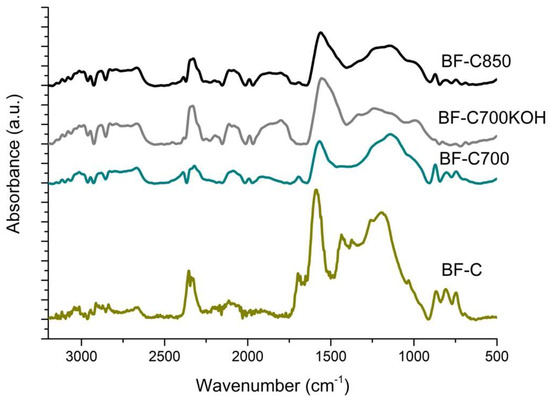 | BF-C850 | Char from bamboo floor thermally activated at 850 °C for 15 min |