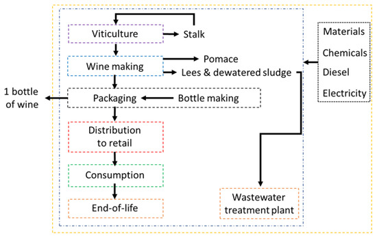 - Harb, W.; Zaydan, R.; Vieira, M. Improving Environmental Performance in Wine Production by Life Cycle Assessment: Case of Lebanese Wine. Int. J. Life Cycle Assess. 2021, 26, 1146–1159. [Google Scholar] [CrossRef]