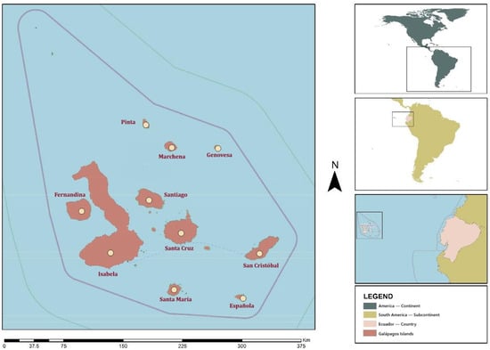 The Galápagos Islands, a province of Ecuador, is an archipelago located 972 km off the Ecuadorian mainland in the Pacific Ocean. It covers a total area of 8010 km2 and comprises 13 larger islands, 6 medium-sized islands, and 215 islets, all of volcanic origin. These “enchanted islands” are some of the most volcanically active regions in the world, contributing to their unique geological and ecological characteristics.