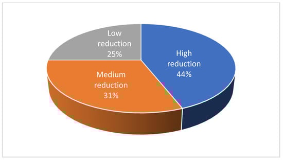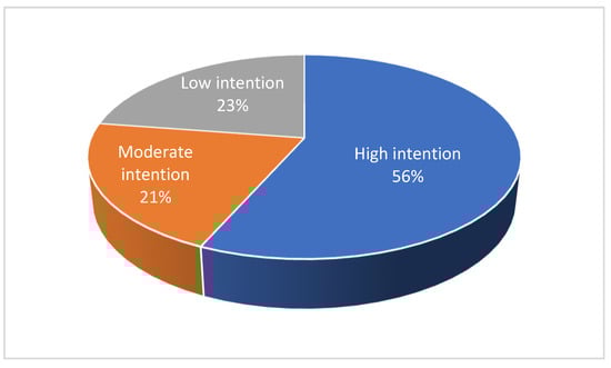Overall, respondents’ intention to reduce their DPBs use was moderate to moderate–high (M = 4.87, SD = 1.97, range 1–7). The sample was divided into three sub-groups: low level of intention (mean up to 3.5), moderate level of intention (mean of 3.5 to 4.5), and high level of intention (mean above 4.5), yielding a distribution of 22.6% who showed a low level of intention (n = 197), 20.8% who showed a moderate level of intention (n = 181), and 56.6% who showed a high level of intention (n = 492) to reduce their DPBs use (see Figure 4).