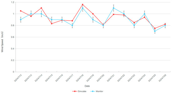 Based on the wind speed, humidity, and temperature result cloud maps, the wind speed distribution across the building’s first floor was relatively uniform, suggesting high spatial homogeneity in the wind environment. However, the humidity and temperature showed significant spatial variation, indicating that humidity and temperature are not only influenced by wind speed but also closely related to the geometric characteristics of the room (e.g., size, location) and the layout of doors and windows (e.g., position, size). Specifically, the air speed fluctuation in the first-floor room was the slowest, indicating a higher stability in the wind environment of this area. In contrast, the fluctuation of humidity and temperature was significantly greater than that of the wind speed, reflecting the greater instability in the humidity and temperature environment. This phenomenon further suggests that the spatial distribution of humidity and temperature is influenced by multiple factors, and their dynamic characteristics are more complex than those of wind speed. Therefore, in building environment control, it is necessary to consider the combined effects of wind speed, humidity, temperature, and their interactions to achieve more precise environmental optimization (shown in