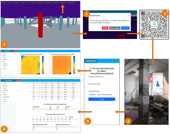 In this case study, the tests on the building carried out immediately after the earthquake in 2016 were integrated with non-destructive tests (NDT) carried out in 2024. These tests can be replicated after several years or after an extreme event in order to check the building’s performance. All the data resulting from the tests are particularly useful in the platform, providing the possibility of monitoring the conditions of the building over time and the progress of the work, as well as predicting failures, planning its maintenance, and also optimizing energy performance.