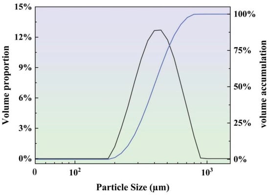 The soil used in the experiments is classified as sandy soil according to the construction engineering classification [41], of which the sand content accounts for 90% and the fine soil content accounts for 10%. The particle size of the sand used in the tests was measured using a laser particle size analyzer (Mastersizer 2000, Malvern, UK). Table 1 presents the particle size information of the sandy soil. Figure 1 shows the particle size distribution curve of the sandy soil. The polyethylene fiber chosen for the experiment is a synthetic fiber, which, compared to natural fibers and other fibers (such as polypropylene fiber and glass fiber), exhibits excellent chemical stability and high tensile strength. The good chemical stability of polyethylene fiber provides better durability and anti-aging performance in soil environments, ensuring its long-term stability within the soil matrix, making it suitable for integration with MICP technology. Additionally, the high tensile strength and elastic modulus of polyethylene fiber help to improve the soil’s ductility, evenly distribute stress, and reduce localized stress concentrations, thereby enhancing the compressive strength and crack resistance of the soil, and addressing the brittleness issue in MICP-treated soils. Relevant parameters and physical properties of the fiber are shown in Table 2.