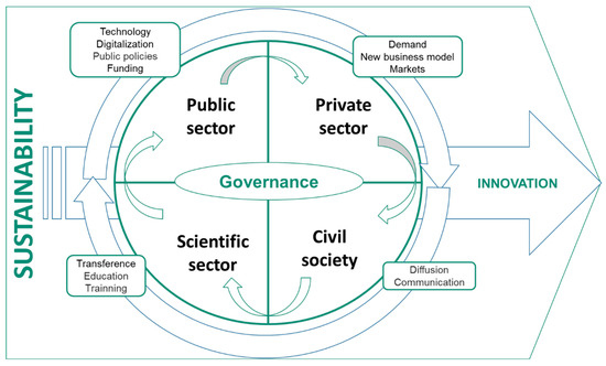 Today, concepts such as the GE, circular economy (CE), bioeconomy (BE), and circular bioeconomy (CBE) are integral to institutional efforts towards sustainable development. The role of public policies is key in this transition. Thus, the European Union is already committed to this approach [2]. However, this transition suffers a knowledge gap in governance [2,3]. More specifically, public policies and governance involve a multiscale approach. This may require significant re-examination of the current models, and thus, lead to a new paradigm of sustainable development governance [4,5]. However, which specific governance mechanisms can governments use to address this challenge?