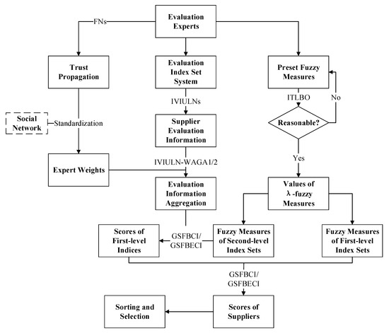 In this section, a green supplier evaluation and selection model based on IVIULN and a bi-direction Shapley–Choquet integral is proposed. In the proposed model, IVIULN is used to evaluate the performance of alternatives in terms of economic, environment, etc., and the bi-direction Shapley–Choquet integral is used to rank the alternatives.