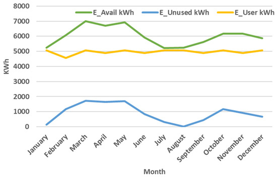 As part of the study, a rooftop solar photovoltaic (PV) system was proposed for the Marwari Hospital. ENVI-met simulations revealed an available rooftop area of approximately 1600 m2, thus making it a viable candidate for solar panel installation. The Global Solar Atlas [53] estimates an average solar irradiance of 5.2 kWh/m2/day for the region, thereby highlighting the potential of solar energy to meet a significant portion of the hospital’s energy needs. Rooftop solar PV systems have gained widespread acceptance in India, bolstered by government incentive schemes designed to promote their adoption. Based on surveys and observations from similar facilities [57], the hospital’s yearly energy demand was estimated at approximately 608 kWh/bed/day. A system designed for 100 hospital beds was modelled, leveraging the rooftop area to supplement grid reliance and provide an emergency power source. As illustrated in Table 6, the following data pertains to the electricity demand of the hospital.