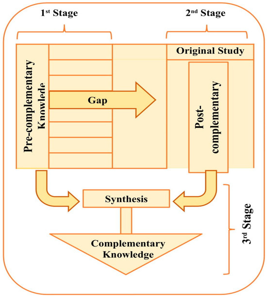 The McA is an approach that enables the holistic evaluation of qualitative and quantitative data collected through different analytical programs. This approach allows a subject to be examined from multiple perspectives, identifying gaps in the literature and contributing uniquely to research through various data collection and analysis methods [72]. Accordingly, the McA consists of three main stages that facilitate access to pre-complementary knowledge, post-complementary knowledge, and complementary knowledge [72,73].