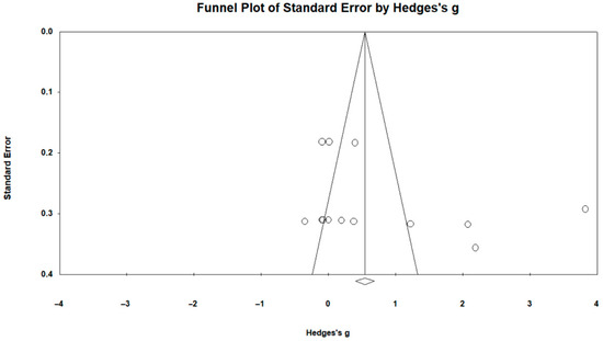 In meta-analyses, a funnel plot is also used to determine publication bias [94]. In this plot, the horizontal axis represents the effect size, while the vertical axis shows the sample size, variance, or standard error values. The funnel plot explains the relationship between the effect size of the study and the sample size (i.e., number of studies). The key point of the plot is that as the sample size (number of studies) increases, the precision of the effect size estimate also increases [95]. Additionally, in the absence of publication bias, the plot will take the form of an inverted symmetric funnel as shown in Figure 3 [96]. Upon examining the funnel plot, it is observed that the studies (points) are distributed on both sides of the vertical line, indicating that there is no bias. Therefore, it can be explicitly stated that no bias is present in this study.