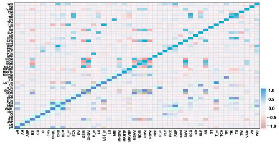 Thermal map of correlation coefficients between soil pH and environmental covariates.