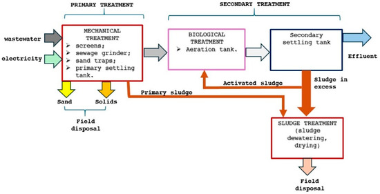 The management of sewage sludge is a complex process with technical, economic, environmental, and legal aspects that interact with each other. Even though sewage sludge treatment and its disposal represent about 20 to 60% of the operating costs of a wastewater treatment plant [10], the sludge issue is often underrated in the activities of management. Sludge treatment consists of thickening, stabilization, dewatering, disinfection, and final disposal. The main sludge contaminants are metals, organic compounds, and pathogenic organisms. The sludge stabilization process is conducted by using the methods of biological stabilization (anaerobic digestion and aerobic digestion), chemical stabilization, and thermal stabilization. To reduce the sludge volume, the fluid properties of the sludge are improved by a thickening procedure followed by dewatering. The methods that are recommended for removing the sludge’s pathogens are sludge disinfection, composting, auto-thermal aerobic digestion, alkaline stabilization, pasteurization, and thermal drying. The main types of sludge transformation and disposal are thermal drying, wet air oxidation, incineration, and disposal in landfills [10].