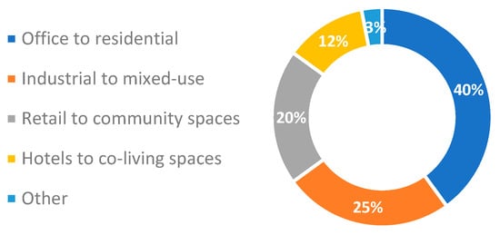 The adaptive reuse of office, commercial, and industrial buildings plays a crucial role in urban sustainability strategies, mitigating environmental degradation, reducing urban stress, and preserving architectural heritage [3,8,9].