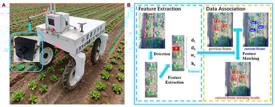 Overview of LettuceTrack [66]: (A) overview of precision spraying robot; (B) detection flow of LettuceTrack.