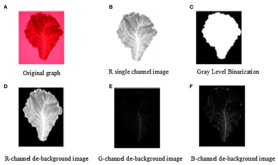 Compared to traditional machine learning methods, deep learning is increasingly applied in trace element detection, demonstrating higher prediction accuracy, generalization ability, and robustness. In recent years, researchers have integrated spectral imaging, DNN, and autoencoders to develop efficient trace element detection methods, meeting the agricultural demand for high-throughput and non-destructive testing. Wu et al. [68] combined near-infrared transmission spectroscopy with DBN to propose a rapid, non-destructive pesticide residue detection method for lettuce leaves. Experimental results showed that the DBN-SVM hybrid model outperformed traditional classification methods, achieving 95% accuracy on the test set, and demonstrating the potential of combining deep learning and spectral analysis for pesticide residue detection. For lettuce trace element deficiency detection, Lu et al. [69] found that the Random Forest algorithm achieved 97.6% accuracy, whereas deep learning models exceeded 99.5%, further highlighting deep learning’s advantages in agricultural data analysis. Zhou et al. [70] introduced a deep learning regression method combining visible-near infrared hyperspectral imaging with stacked autoencoders (SAE) and least squares support vector regression (LSSVR), successfully enabling rapid prediction of cadmium (Cd) residues in lettuce leaves. In subsequent research [71], the same team further incorporated wavelet transform (WT) and stacked convolutional autoencoders (SCAE) for lead (Pb) detection, although Cd prediction performance declined slightly (Rp2 decreased by 0.0168, RP decreased by 0.116), indicating room for improvement. Additionally, Sun et al. [72] utilized infrared spectroscopy to identify the characteristic wavelength (709 nm) for pesticide residue detection and employed CNNs for model training, enabling rapid detection of pesticide residues on lettuce leaves with improved accuracy and efficiency. The targeted image extraction process during the characteristic wavelength spectral analysis is illustrated in Figure 6.