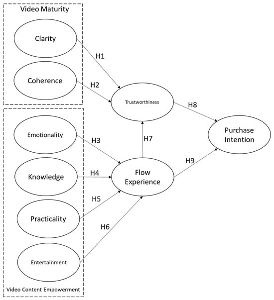 The emotional appeal of a video helps evoke consumers’ emotional responses, which deepen their memory of the product and influence their purchase decisions when emotions are triggered [1,11]. Informative content satisfies consumers’ need for product details, enhancing their cognitive understanding of the product and thus increasing purchase intentions [12,13]. Practicality reflects the product’s applicability in daily life. Consumers tend to choose products that solve real-world problems, and this attribute often directly translates into purchasing behavior [9,14]. Entertainment value enhances the attractiveness of a video, enriching the viewing experience with engaging and enjoyable content, which in turn influences purchase decisions [4,15].