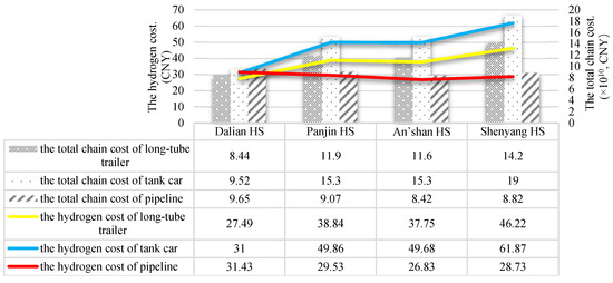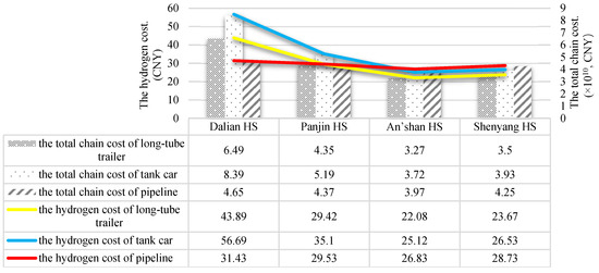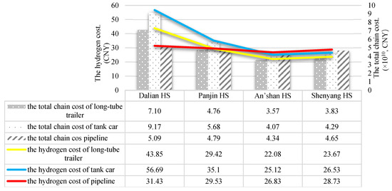 Cost: The total chain cost of the expansion of SY is 3.57 × 1010 (CNY) and the hydrogen cost is 22.08 (CNY).