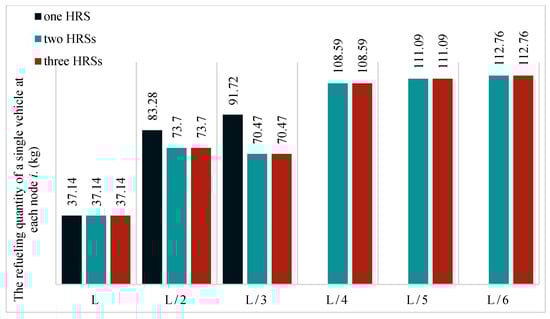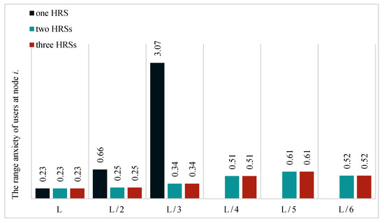 Formula (13) indicates that if there is a HRS at the starting point, the remaining range of HFCV is L. If there is no HRS at the starting point, the remaining range of HFCV is , , , , . The different remaining range of HFCVs determines the possibility of range anxiety on the path.