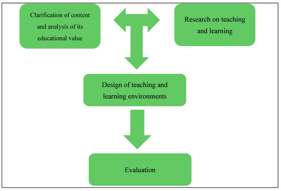 The present proposal is based on the utilization of two epistemological models as tools for designing teaching learning sequences (TLS) for basic ecological concepts. A TLS is an interventional research activity that lasts a few weeks and includes well-validated teaching–learning activities empirically adapted to student reasoning as well as teachers’ guidance with well-documented teaching approaches and expected student reactions [48,49]. The first model is the model of Educational Reconstruction [50], which was chosen because it is well known and frequently used in science instruction as a design tool for TLSs. Figure 1 summarizes its essential elements.