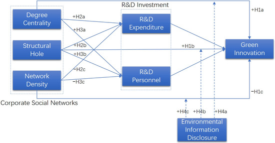 Additionally, developing a new GI product or technology is often constrained by the firm’s own resources and incomplete information, leading to significant risks. Trust relationships in strong networks can greatly reduce the difficulty and risk of GI, making firms more willing to share green technology resources in low-risk situations [104]. Typically, a firm’s CEO and board provide strategic guidance for R&D activities. When making R&D-related decisions, the firm’s social networks can offer valuable R&D-related information [105]. Helmers et al. (2017) [106] found that a firm’s social networks facilitate the dissemination of new knowledge, enabling the company to conduct new research and resulting in increased R&D investment. Therefore, social network embedding helps firms to acquire abundant green technology resources, reduces the GI risks for the company, and supports increased green R&D investment.