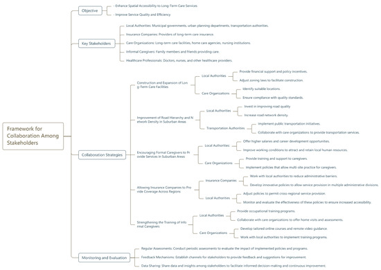 This study pioneers a comprehensive spatial accessibility analysis of long-term services and supports (LTSSs) in Chengdu, a rapidly aging megacity and a pioneer in China’s urban–rural integration policies. By integrating an enhanced two-step floating catchment area (2SFCA) method with demand intensity coefficients and a spatial mismatch index (SMI), this research addresses critical gaps in understanding how geographic and socioeconomic factors shape LTSS accessibility in a developing western Chinese metropolis. The findings not only validate the pronounced urban–suburban disparities in LTSS provision but also provide novel insights into the mechanisms driving these inequities. Below, we discuss the implications of our results in light of the study’s methodological innovations, theoretical contributions, and policy relevance, while emphasizing the proposed collaborative framework to bridge spatial accessibility gaps.